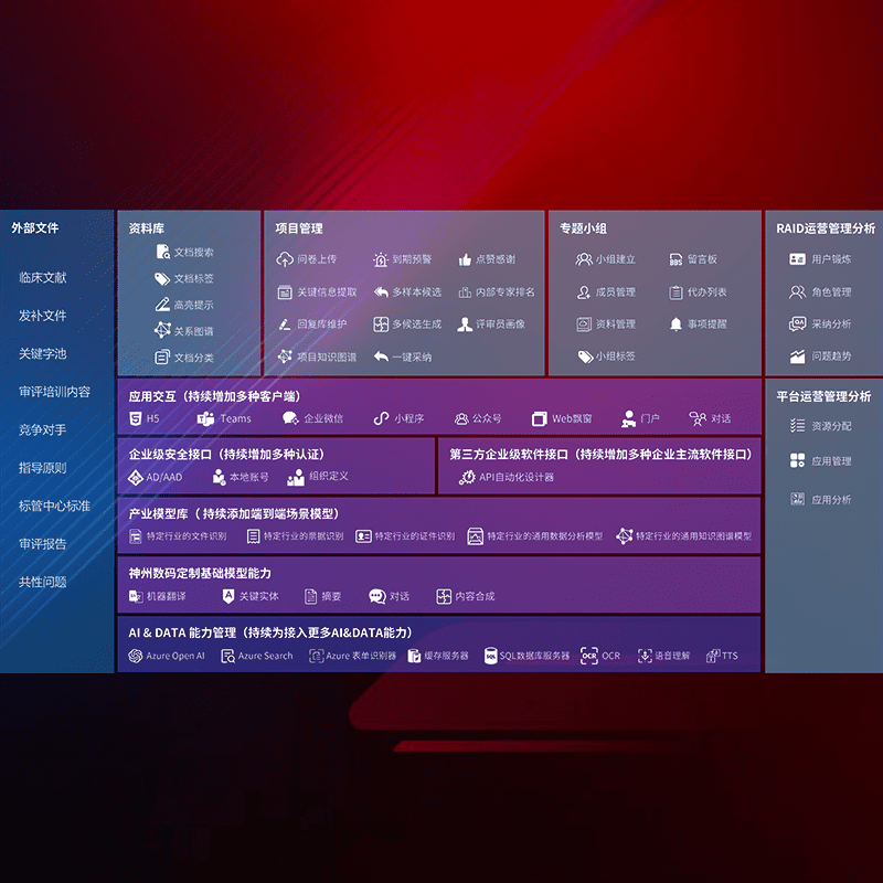 医疗器械产品上市前,,,,要熟悉严格与繁复评审标准,,整理分析监管机构指导文件中的海量信息。。。。企业急需一个智能化解决方案,,,提升知识管理效率,,,提高评审通过率,,,以提升其市场竞争力。。