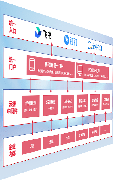 对协作平台提供支持服务,,支持企业应用与协作平台对接,,,包含组织同步、、消息集成、、待办集成等。。支持目前主流的协作平台:钉钉、、、、企微和飞书。。。